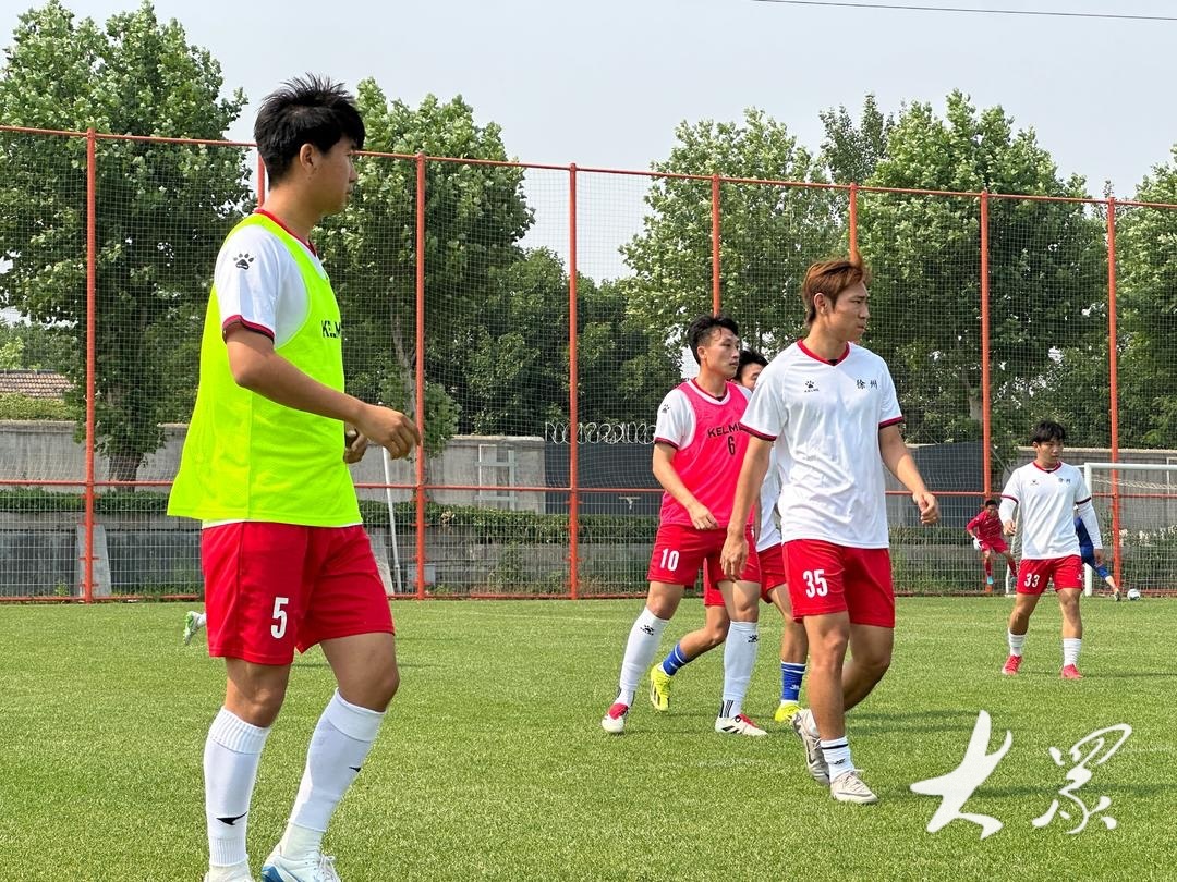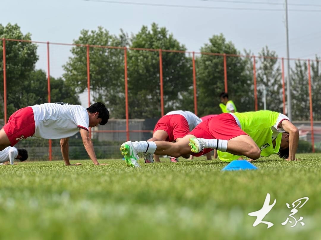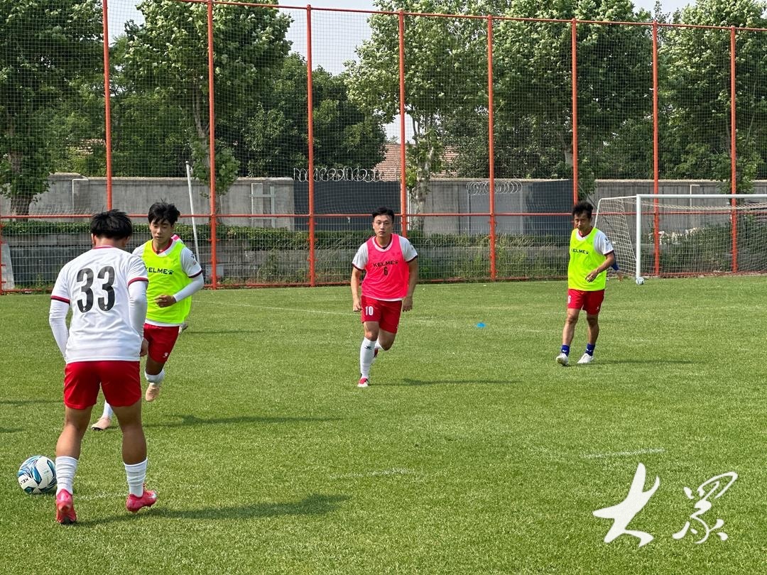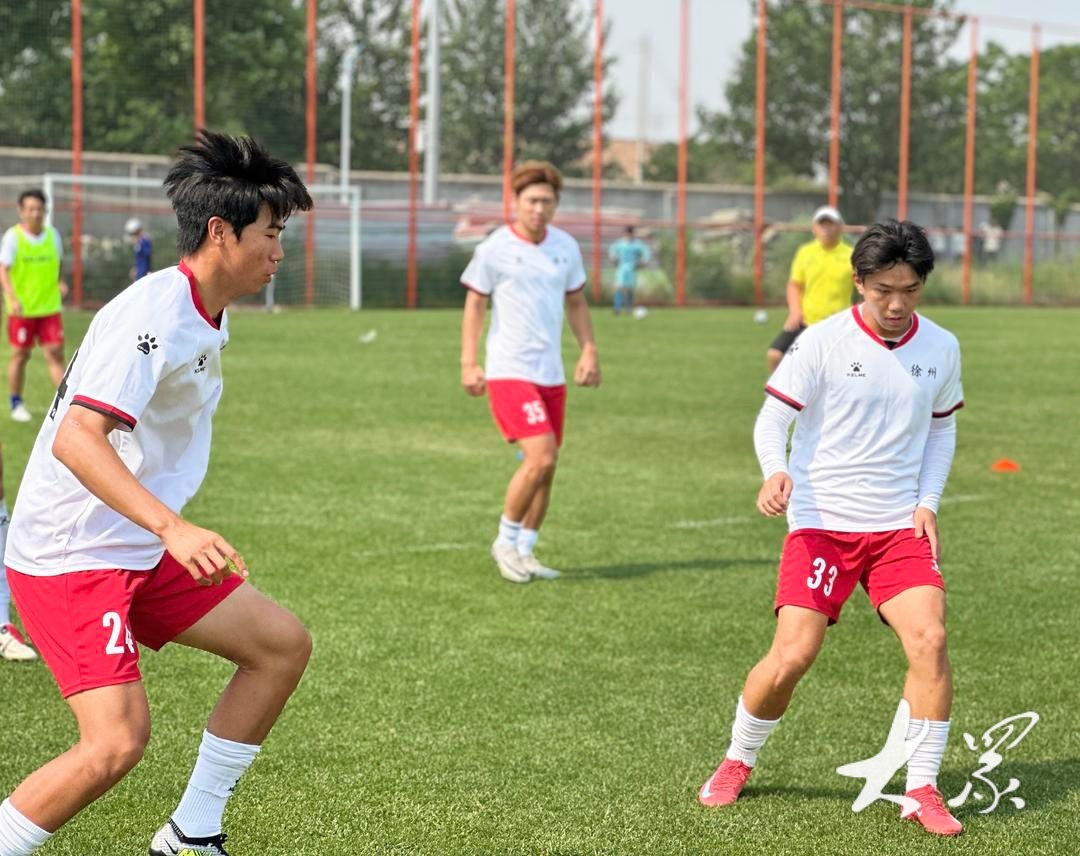 第三次来鲁封闭集训,以中超标准踢“苏超”的徐州队,受到广大网友和球迷关注。6月7日,大众新闻记者在位于潍坊的山东鲁能泰山足球学校(下称“鲁能基地”),见到了正在训练的徐州队。烈日骄阳下,他们全力备战。
